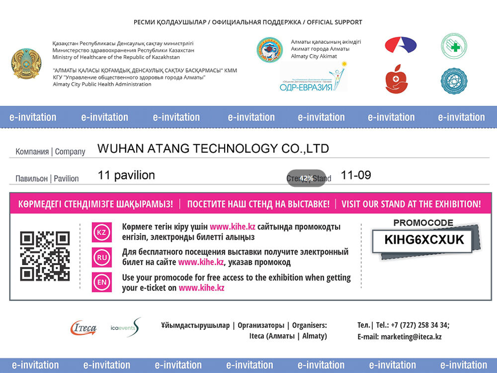 Wuhan Atang Technology will participate in the Medical Equipment Exhibition in Almaty, Kazakhstan, from May 21 to May 23, 2025.